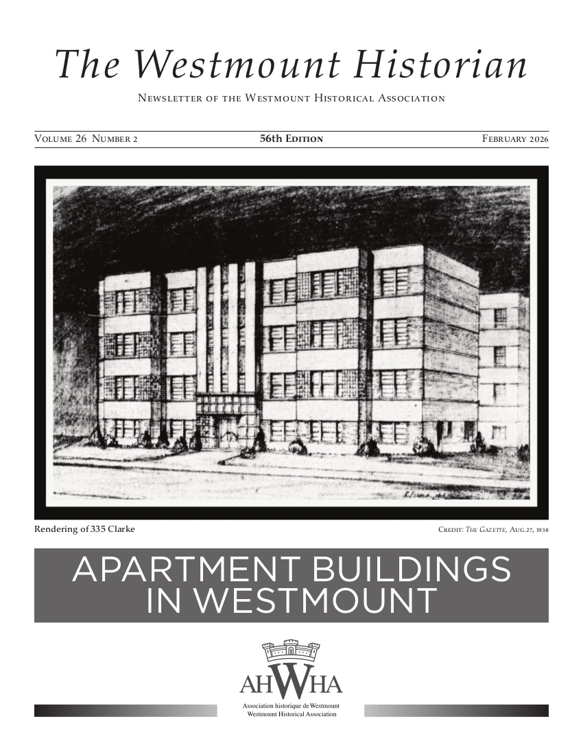 Annual membership provides free admission to our two lectures series on Westmount’s history and heritage, participation in walking tours of Westmount, two issues of the WHA newsletter The Westmount Historian, and access to our Archives. Please note that our membership year now corresponds with the calendar year.
